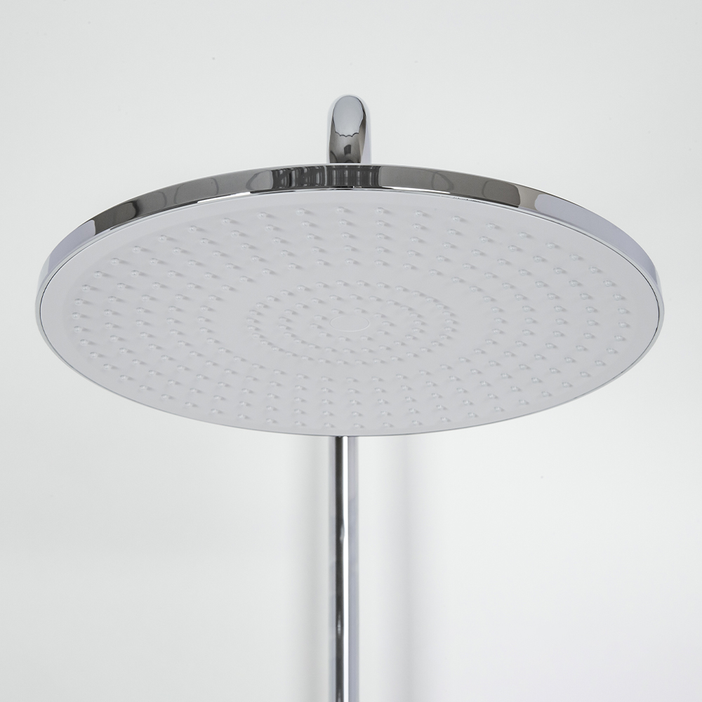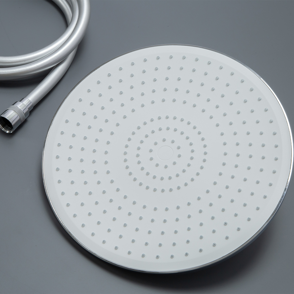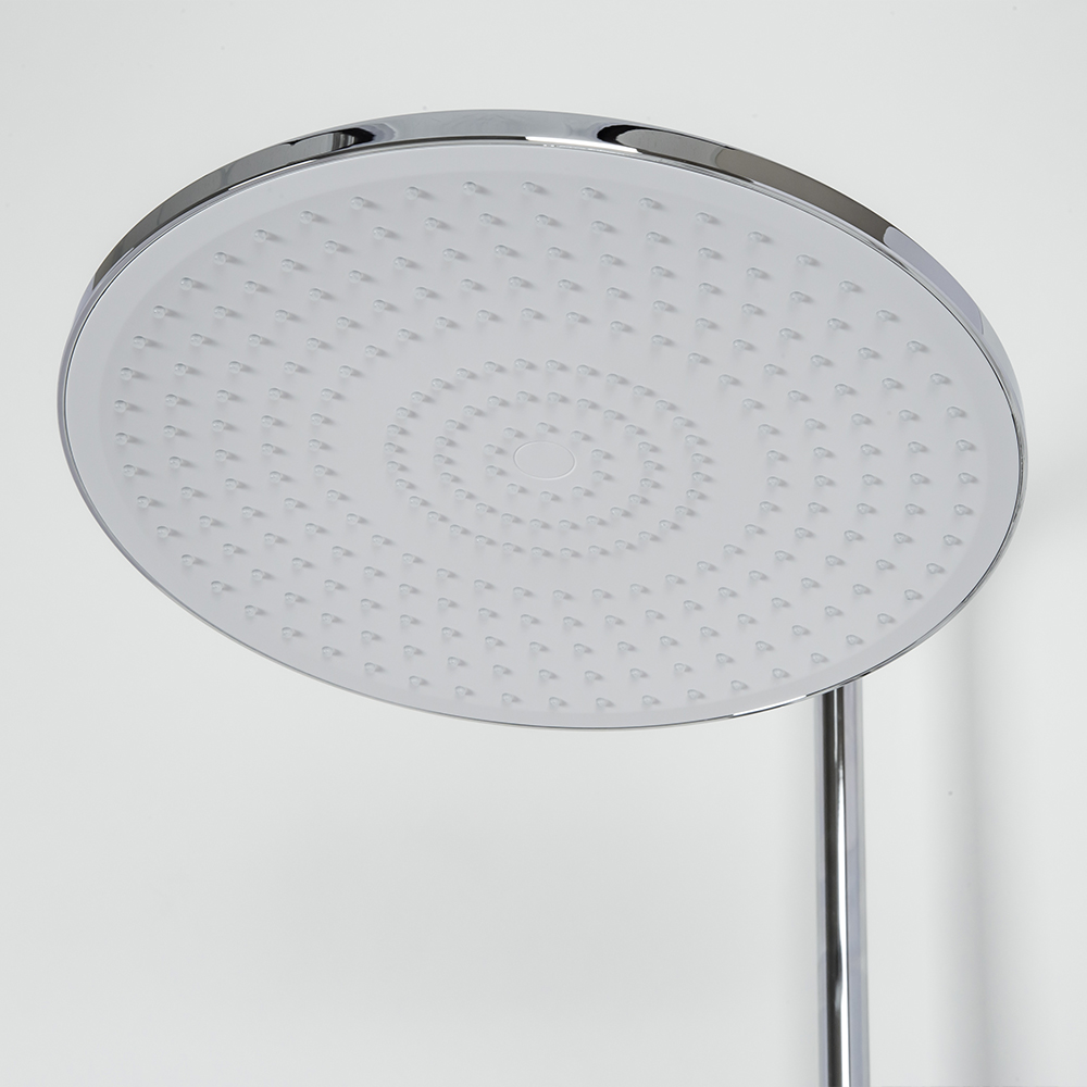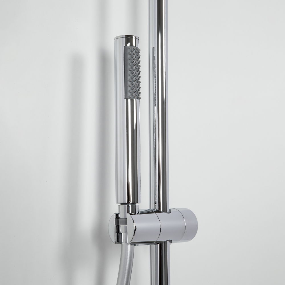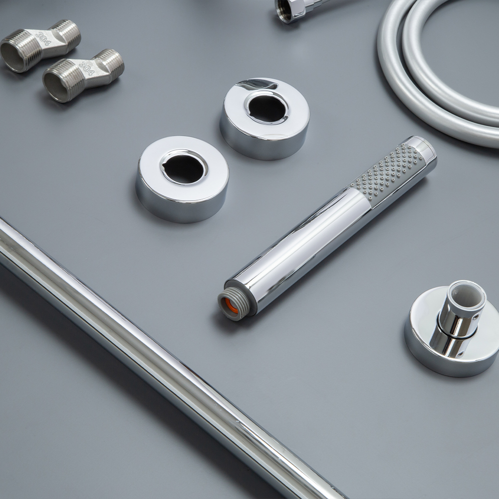 душевая стойка; комплект эксцентриков; смеситель; верхний душ; душевой шланг; ручной душ; инструкция.