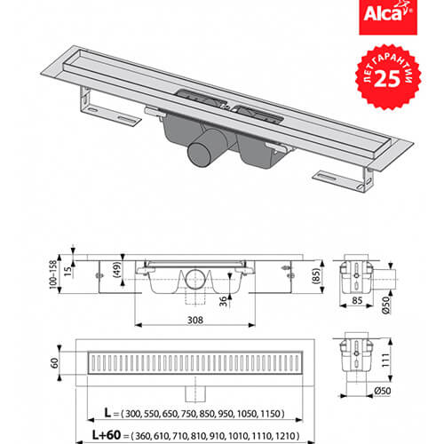 Длина душевого лотка (см)