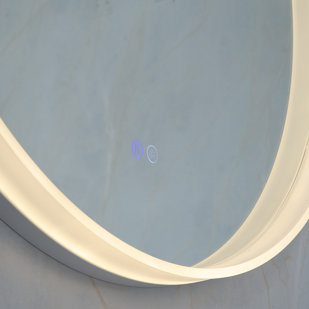 Зеркало из серебра без меди толщиной 5 мм с защитной пленкой сзади. Три цветовые температуры. Водонепроницаемость IP44. Мощность нагрева: 28 Вт. Мощность подсветки: 24 Вт.