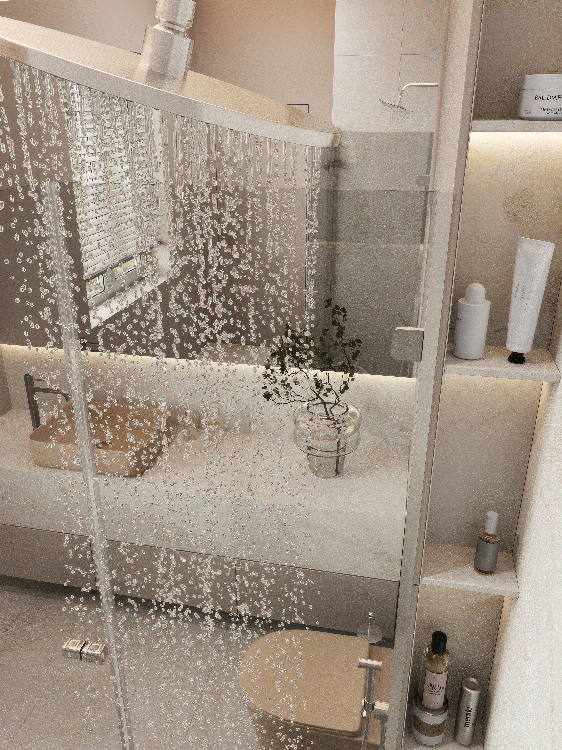 В проекте использованы сочетание новых оттенков коллекции керамики бежевый матовый и сантехники цвет оружейной стали, что делают проект неповторимым.